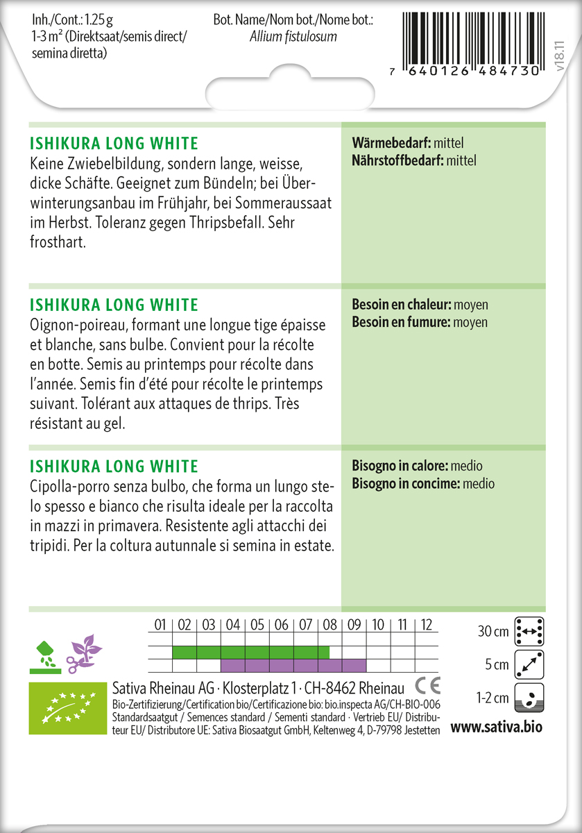 Lauchzwiebel ISHIKURA LONG WHITE – 1 Tüte Bio-Saatgut von Sativa